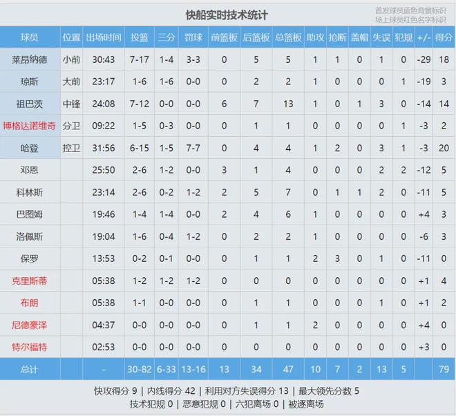 快船外线失准,首节三分球12中2,勇士三分15中7。第二节,伦纳德和保罗带着快船第二阵容。保罗真是老了,被波杰追身顶板大帽。祖巴茨面对39岁的霍福德,在篮下也没什么办法。哈登连续砍分,第二节还剩3分钟,快船追平了。