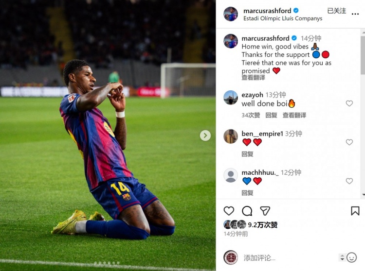 加盟巴萨以来6球7助!拉什福德晒照庆祝胜利:感谢大家的支持